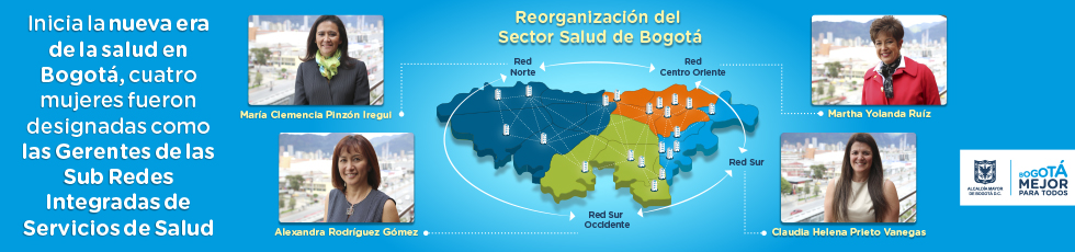 El Secretario Distrital de Salud Luis Gonzalo Morales Sánchez posesionó a las gerentes de las 4 Subredes Integradas de Servicios de Salud: Sur, Norte, Sur Occidente y Centro Oriente. Las 4 mujeres fueron designadas por el alcalde Mayor de Bogotá Enrique Peñalosa. Las cuatro “supergerentes” cuentan con una reconocida trayectoria profesional en el área de la salud tanto en el sector publico cómo privado en entidades del orden Nacional y Distrital.  Ver mas...